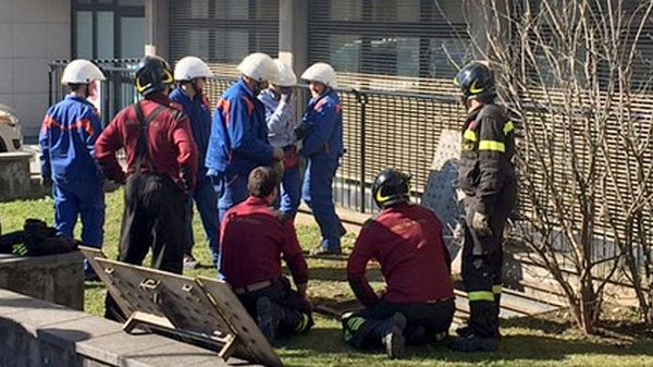 Vigili del fuoco e tecnici Enel al lavoro per l’incendio di un cavo sotterraneo all’altezza della cabina di Casa Prina. Emergenza dalle 11,20 alle 12,30 di giovedì 26 febbraio
