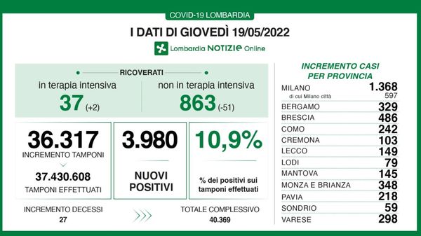 In Regione Lombardia i decessi sono 27