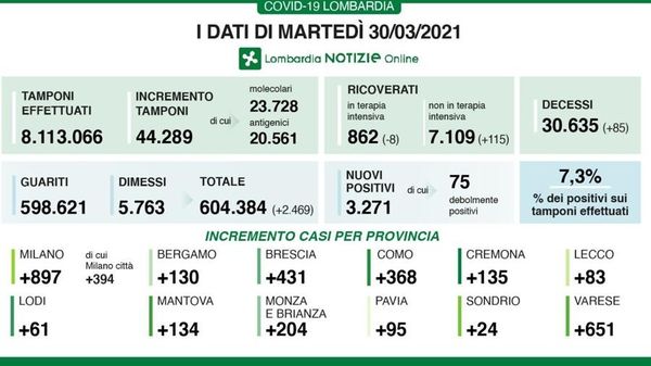 Percentuale al 7,3 per cento. In Lombardia 85 morti