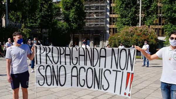 Cinquanta persone hanno dato vita a una manifestazione in piazza Cavour contro l’assegnazione della sede a Pallanuoto Como