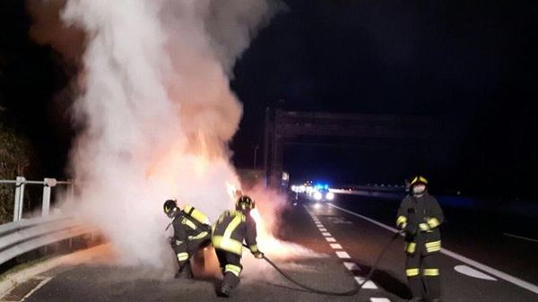 Allarme alle 19.30 per una vettura che ha preso fuoco sulla carreggiata Nord dell’Autolaghi