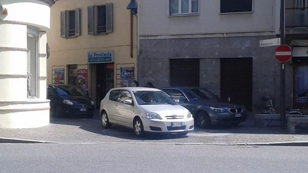 La manovra vietata in uscita dal parcheggio sulla strada provinciale