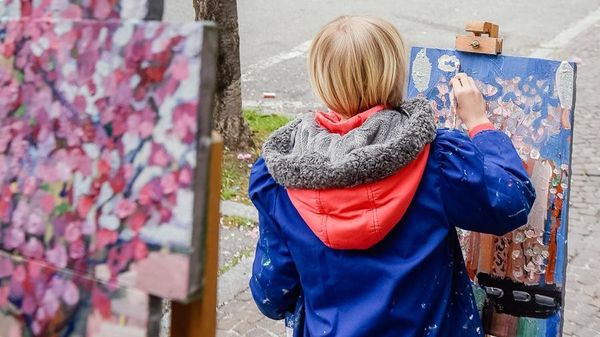 Como: ha gli stessi colori poetici dei ciliegi in fiore di via XX Settembre, l’immagine del maestro e della piccola pittrice che, ieri mattina, erano impegnati a immortalare con pennelli e tavolozze la strada dei petali rosa.