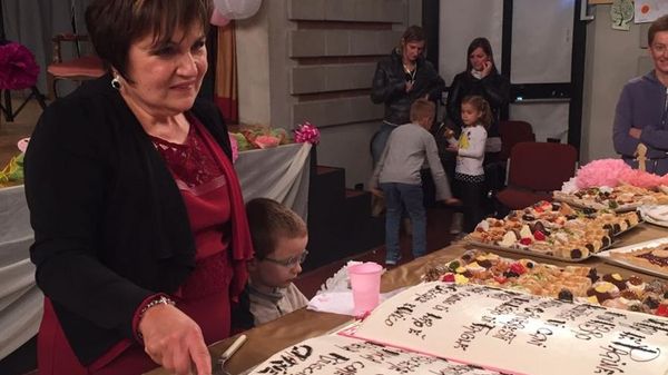 La maestra Piera dell’asilo festeggiata con una super torta libro