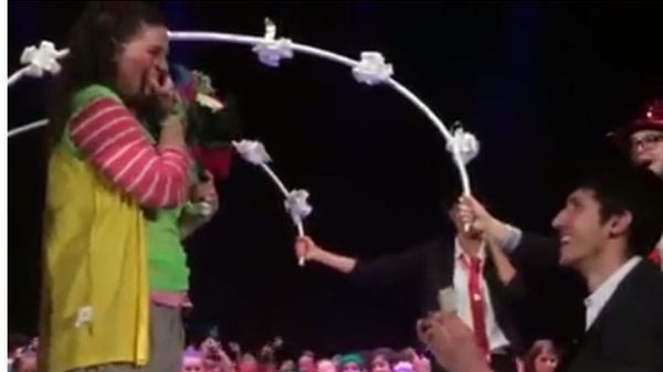 Sorpresa: ferma il saggio e le chiede di sposarlo