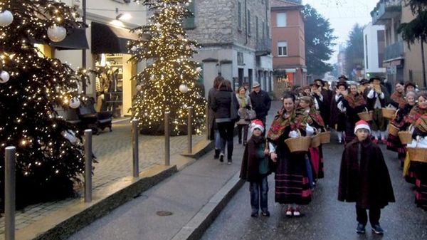 Tanta gente ieri pomeriggio per le vie del centro e in piazza Mercato nonostante la pioggia. Lancio dei palloncini ad Arcellasco. Allestito il presepe nel lavatoio di piazza della Rovere