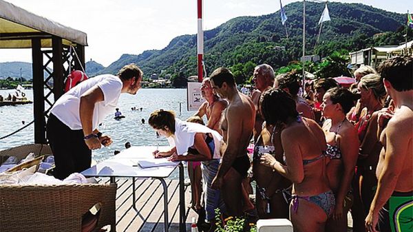 Non uno ma 211 tuffi al Lido Villa Olmo per rendere tributo, finalmente, al lago tornato balneabile dopo quarant’anni di divieto.
