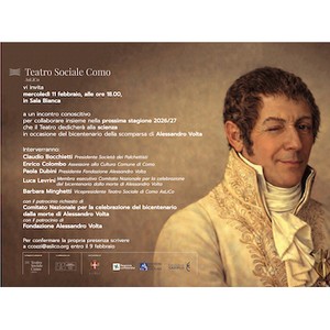 Il Teatro Sociale di Como invita a un incontro conoscitivo per collaborare insieme nella prossima stagione 2026 / 27 che Aslico dedicherà alla scienza, in occasione del bicentenario della scomparsa di Alessandro Volta.