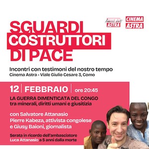 La guerra dimenticata del Congo tra minerali, diritti umani e giustizia. In sala saranno presenti Salvatore Attanasio, , padre dell’ambasciatore Luca Attanasio, ucciso in Repubblica Democratica del Congo il 22 febbraio 2021, l’attivista congolese Pierre Kabeza e la giornalista Giusy Baioni. L’incontro sarà l’occasione per raccontare la vita del giovane diplomatico, il percorso che l’ha portato dalla sua Limbiate a rappresentare l’Italia nel mondo. A questa prima parte seguirà un approfondimento per comprendere il contesto in cui è avvenuto l’omicidio di Attanasio e del carabiniere Vittorio Iacovacci e dell’autista congolese Mustapha Milambo. Ci si concentrerà sul ruolo del Kivu, nell’est della Repubblica Democratica del Congo, e sulla sua centralità nel mercato del coltan e altre pietre rare fondamentali per la new economy.