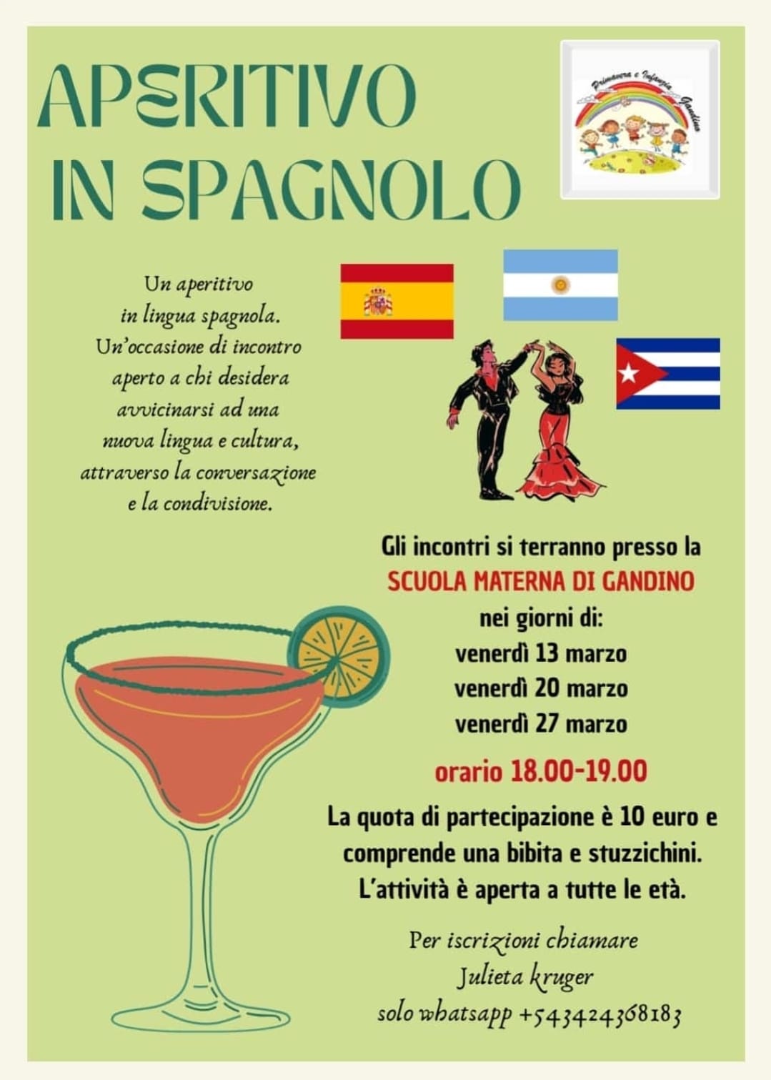 Iscrizioni: Julieta Kruger, solo WhatsApp +54 342 436 8183