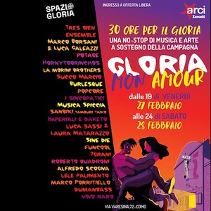 Apertura ininterrotta per l’evento 30 ore per il Gloria. La campagna di raccolta fondi Gloria mon amour, iniziata lo scorso anno e finalizzata a stabilizzare l’esperienza del Circolo Arci Xanadù, muove un altro passo avanti con un’apertura straordinaria dello Spazio Gloria che vedrà il coinvolgimento di numerose realtà musicali e associative del territorio oltre a proiezioni e occasioni di incontro e confronto.