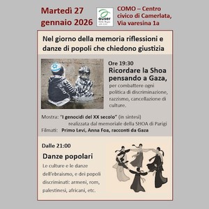 In occasione del Giorno della memoria, Bal Folk Como propone una serata di riflessione e condivisione che unisce parola, immagini e danza, per interrogare il presente a partire dalla storia con un programma che invita a contrastare ogni forma di discriminazione, razzismo e cancellazione delle culture.