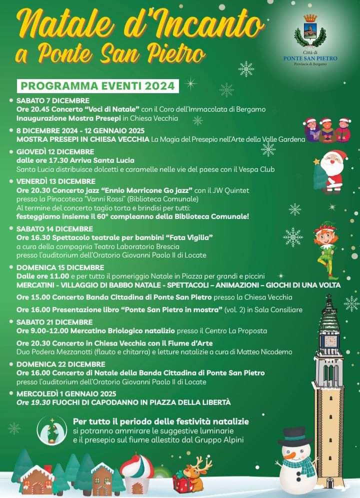 A chiudere i tanti appuntamenti festivi di Ponte San Pietro ci sarà il tradizionale spettacolo di fuochi d'artificio in Piazza della Libertà. Per festeggiare l'arrivo dell'anno nuovo in grande stile e con tanta buona musica.