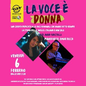 La voce è donna, un viaggio musicale che celebra le icone della musica italiana e internazionale. Protagonista della serata sarà Anna Guastalli, soprano di formazione lirica diplomatasi con la prestigiosa commissione del Teatro alla Scala, ma capace di spaziare con naturalezza nel pop e nel jazz, come dimostra la vittoria al Premio Donida. Ad accompagnarla al pianoforte ci sarà Omar Ricca, musicista che fonde il rigore classico con l’improvvisazione jazzistica. Il duo promette un’interpretazione intensa e carica di sfumature, restituendo nuova luce a brani che hanno segnato la storia.