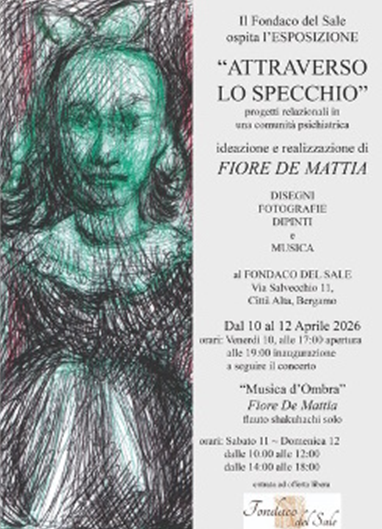 Venerdì 10 aprile alle ore 19:00 inaugurazione della mostra, seguita dal concerto Musica d’Ombra, un’immersione nei suoni del flauto tradizionale giapponese shakuhachi. Dal 10 al 12 aprile al Fondaco del Sale arriva Attraverso lo Specchio, un progetto di Fiore De Mattia nato da vent’anni di lavoro e ricerca all’interno di una comunità psichiatrica. In mostra disegni, fotografie e dipinti che raccontano in modo diretto e intenso l’incontro con l’altro: volti, relazioni, fragilità e momenti di verità restituiti attraverso uno sguardo autentico. Un’occasione per fermarsi, prendersi un po’ di tempo e lasciarsi coinvolgere da un percorso artistico semplice ma profondo, dove immagini e atmosfere dialogano con il visitatore in modo personale e immediato.