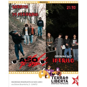 Aso, direttamente dalla provincia lecchese, portano un mix potente di riverberi, feedback e spoken word. Testi in italiano che scavano nell'introspezione tra alternative anni 90 e post - rock puro. Sarà l'occasione per sentire i brani di Panorama, il loro primo album in uscita a fine mese.