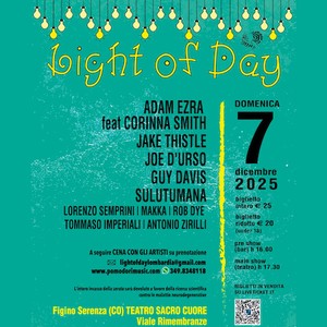 Il Light of day, il super evento patrocinato da Bruce Springsteen per combattere il Parkinson ritorna a Figino Serenza. Sarà l’unica tappa italiana dopo aver girato nelle principali capitali europee e prima della maratona finale di Asbury Park nel New Jersey. Sul palco saliranno il bluesman Guy Davis, più volte candidato ai Grammy, la nuova promessa del rock Jake Thistle, il cantautore Adam Ezra insieme alla violinista Corinna Smith e l’infaticabile rocker e vero (pro)motore del Light of day, Joe D’Urso. I super ospiti di quest’anno saranno i Sulutumana, la cult band del lago di Como da sempre in prima linea sul sociale che si unirà alla causa per la lotta al Parkinson creando un suggestivo ponte musicale tra Italia e America con inediti momenti di interazione.