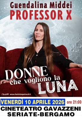 Il nuovo show di Guendalina Middei «Donne che vogliono la Luna» presso il CineTeatro Gavazzeni di Seriate (BG) venerdì 10 aprile 2026 alle 21:00.