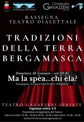 Al cineteatro Gavazzeni di Seriate, la compagnia "Gruppo Caro Teatro" di Palosco presenta commedia dialettale brillante in 2 atti.