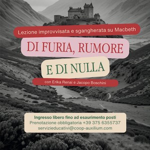 C’è Macbeth, che sogna il potere. Lady Macbeth, che sogna per lui — o forse per sé. Tre streghe che lo illudono. Un trono che sembra vicino. Una macchia che non se ne va. E poi ci siamo noi. Di furia, rumore e di nulla è uno spettacolo teatrale che parte da Shakespeare per arrivare al presente. Una lezione sgangherata — un po’ teatro, un po’ riflessione — su desideri, illusioni e tutto ciò che inseguiamo senza sapere bene perché. Macbeth baratta la propria pace interiore con un trono traballante. Lo seguiamo mentre cerca di colmare un vuoto con il rumore delle conquiste. E ci chiediamo, assieme a lui: quanti dei nostri desideri sono davvero nostri?
