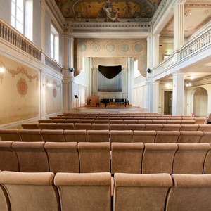 La MIA ha voluto recuperare, grazie al contributo di Enti ed Associazioni, in particolare la Società Autostrade Serenissima S.p.A. mediante intervento della Provincia, del Comune di Bergamo e della Camera di Commercio, la famosa sala da concerti, per perpetuare a Bergamo le tradizioni culturali e musicali che hanno in passato consentito la nascita e lo sviluppo di vere e proprie eccellenze nel campo della musica colta, da Gaetano Donizetti (allievo dellIstituto Musicale) ad Alfredo Piatti, a Mayr ecc. Il costo complessivo delle operazioni è stato di circa 2 miliardi di vecchie lire.