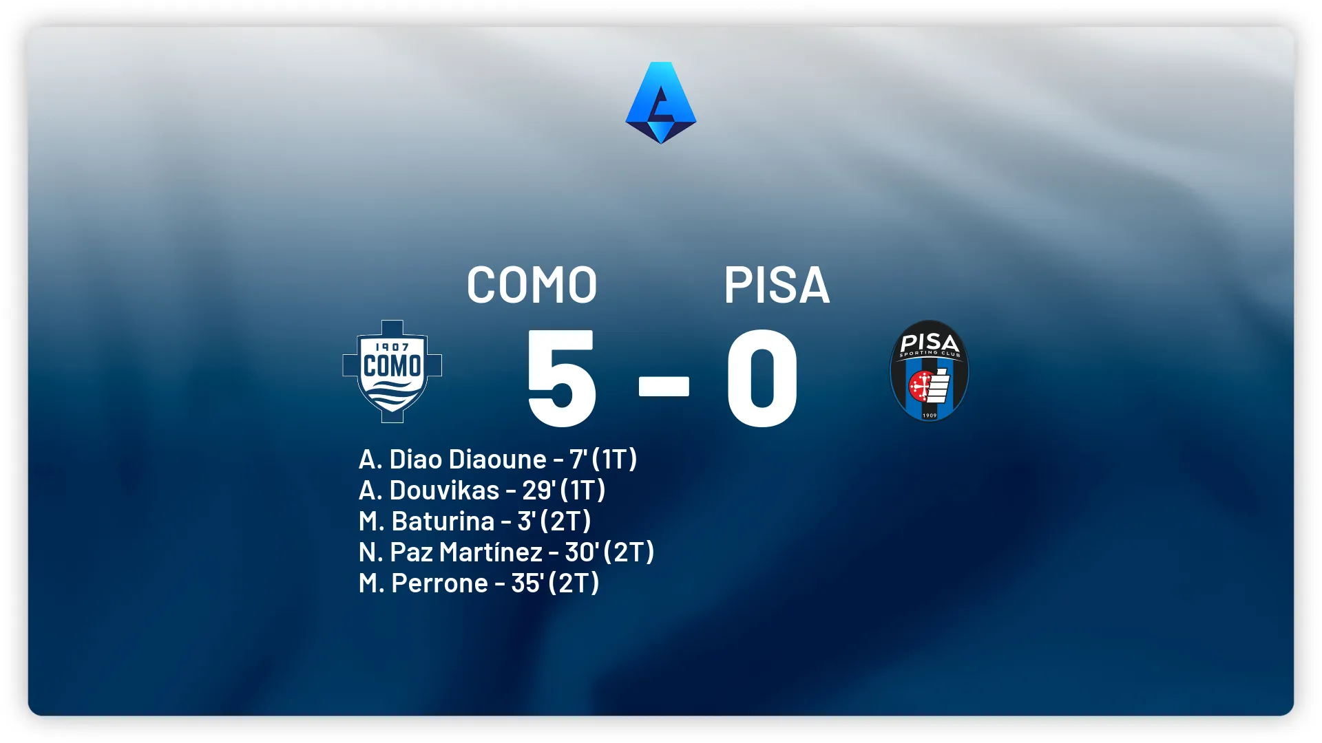 Il Como, dopo la vittoria contro la Roma e il consolidamento del quarto posto e della zona Champions, domenica alle 12.30 affronta il Pisa al Sinigaglia. I toscani sono reduci dalla vittoria interna contro il Cagliari e si giocano le ultime chance di salvezza. Assenti gli squalificati Durosinmi (due turni) e Aebischer. Out sicuri per infortunio Marin, Scuffet e Denoon, da valutare Calabresi, Cuad…