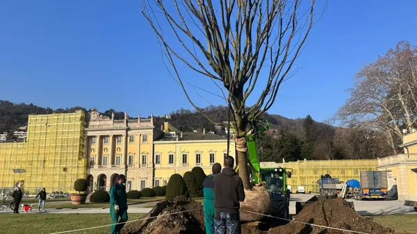 Como Piantumazione a Villa Olmo dell’albero simbolo del parco: è alto 15 metri e ha un tronco del diametro di 120 centimetri