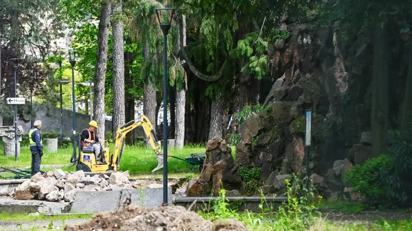Lavori pubblici Partito l’intervento per la demolizione dell’opera di Mario Musa di cui resterà “il mascherone”. Operai impegnati anche nella rimozione del porfido