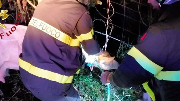 Incastrata nella staccionata Capretta salvata dai pompieri