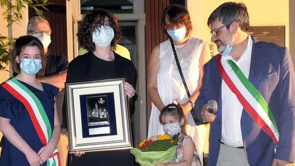 La benemerenza civica al personale sanitario ritirata dalla dottoressa albesina Sara Cazzaniga che lavora all’ospedale di Bergamo.La targa resterà in municipio