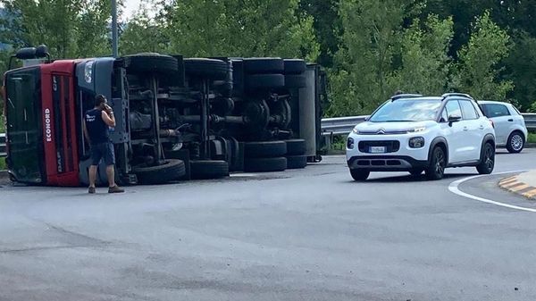 L’incidente alla rotonda, il traffico deviato in centro paese. Illeso l’autista