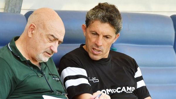 Giancarlo Centi in panchina, taccuino in mano. Insieme a lui Massimo Cicconi, tornato ufficialmente al lavoro con il Como