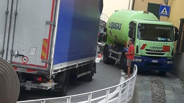 Il mezzo pesante si è fermato proprio nella strettoia sulla Regina