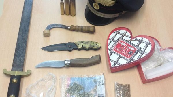 Nell’abitazione aveva qualche dose di cocaina e marijuana, ma anche una spada con lama di 67 centimetri