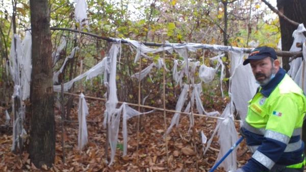 Blitz nell’area verde degli agenti della polizia locale insieme alla protezione civile. Il sindaco Clerici: «Intervento per garantire la sicurezza della gente che passeggia nei boschi»