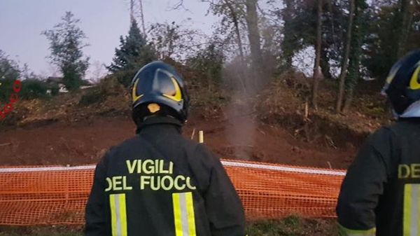Vigili del fuoco mobilitati alle 16,50 in via Diaz dove il mezzo di un cantiere ha danneggiato una conduttura