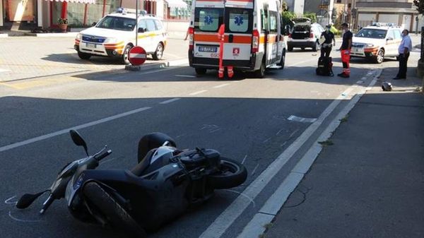 Lo scontro è avvenuto alle 16,15 in vi Milano: un motociclista di 19 anni è stato trasportato in codice rosso a Varese