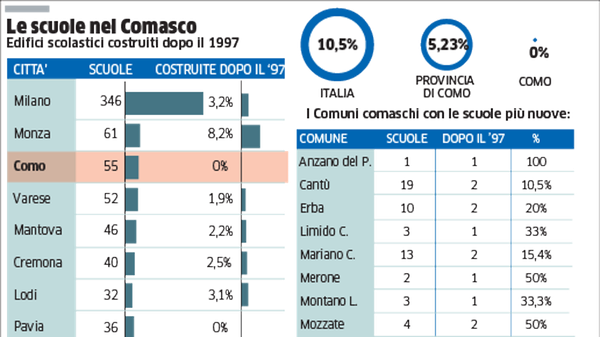 Il report In città nessun edificio scolastico costruito dopo il 1997. E anche il dato della provincia è basso: solo 17 strutture su 325