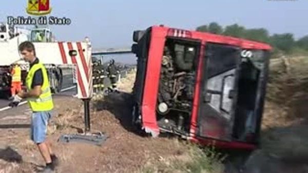 Pullman finisce fuori strada su A1, 15 feriti