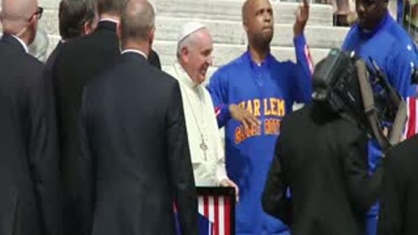 Papa gioca con il pallone degli Harlem Globetrotters