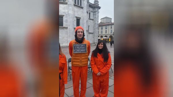 Cronaca / Como città L’attivista neozelandese Matt Ó Branáin e la comasca Lorena Corrias per Julian Assange in Piazza Verdi 2 anni fa