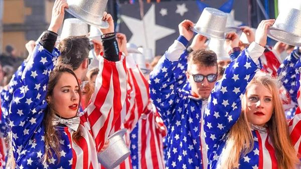 Mariano Due ballerine tenute ferme al guinzaglio. Lui, Fem, che fa un passo avanti spostandosi la giacca appena sotto la spalla. Altra inquadratura: cappellino con le orecchie da Topolino in testa e balletto. E poi, ancora, il numeroso gruppo di …