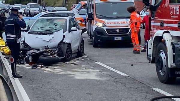 Como La vettura stava entrando in un cancello, la moto l’ha colpita su una fiancata
