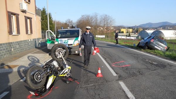 Lo scontro si è verificato stamattina alle 8 sulla provinciale, coinvolte un'auto finita fuori strada e una moto da cross