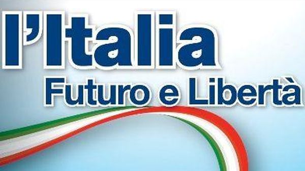 Fli/ Onda tricolore che cresce e unisce simbolo Fini a Mirabello Azzurro Pdl solo mezzo sfondo:'l'Italia.Futuro e Libertà' il logo