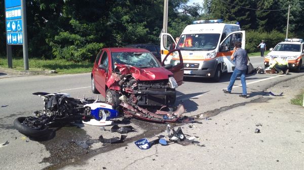 Auto contro moto a Villa Guardia Traffico bloccato sulla Varesina