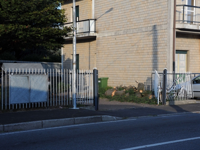 Un pino (alto venti metri) che era piantumato nel giardino della palazzina in viale Trieste, dove ha sede un ambulatorio veterinario, ha ceduto, precipitando sul cancello - danneggiato - e quindi planando sulla Briantea, rimasta interrotta per circa tre quarti d'ora.