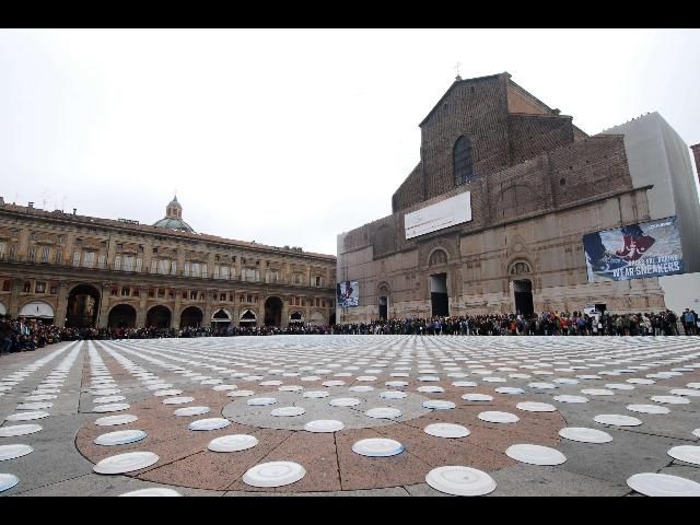 (ANSA) - BOLOGNA, 14 OTT - Diecimila piatti per'apparecchiare' piazza Maggiore, come un'enorme tavola. E' laperformance di Pixel Art organizzata a Bologna dalla Onlus Cefa,che ha raccolto fondi per il Sud Sudan, nella giornata mondialedell'Alimentazione. I fondi raccolti, circa duemila euro, saranno destinati alprogetto di sviluppo Cefa in Sud Sudan per costruire otto pozziin otto scuole.