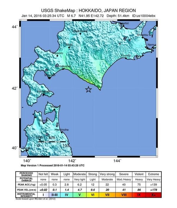 TOKYO - Un forte terremoto di magnitudo 6,7 e' stato registratovicino alla costa dell'isola di Hokkaido, nel nord del Giappone.Non e' stato diramato alcun allarme tsunami. Non ci sono notiziedi feriti o danneggiamenti.