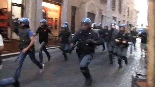 Manovra/ Petardi al sit in dei Cobas, Polizia carica In piazza anche fumogeni e fuochi d'artificio